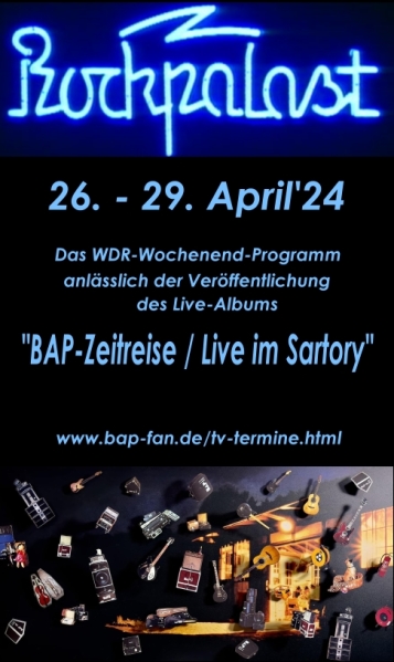 Hier das aktualisierte WDR-Wochenend-Programm anlässlich der Veröffentlichung des Live-Albums "BAP-Zeitreise / Live im Sartory" rund um und mit BAP und Wolfgang Niedecken: